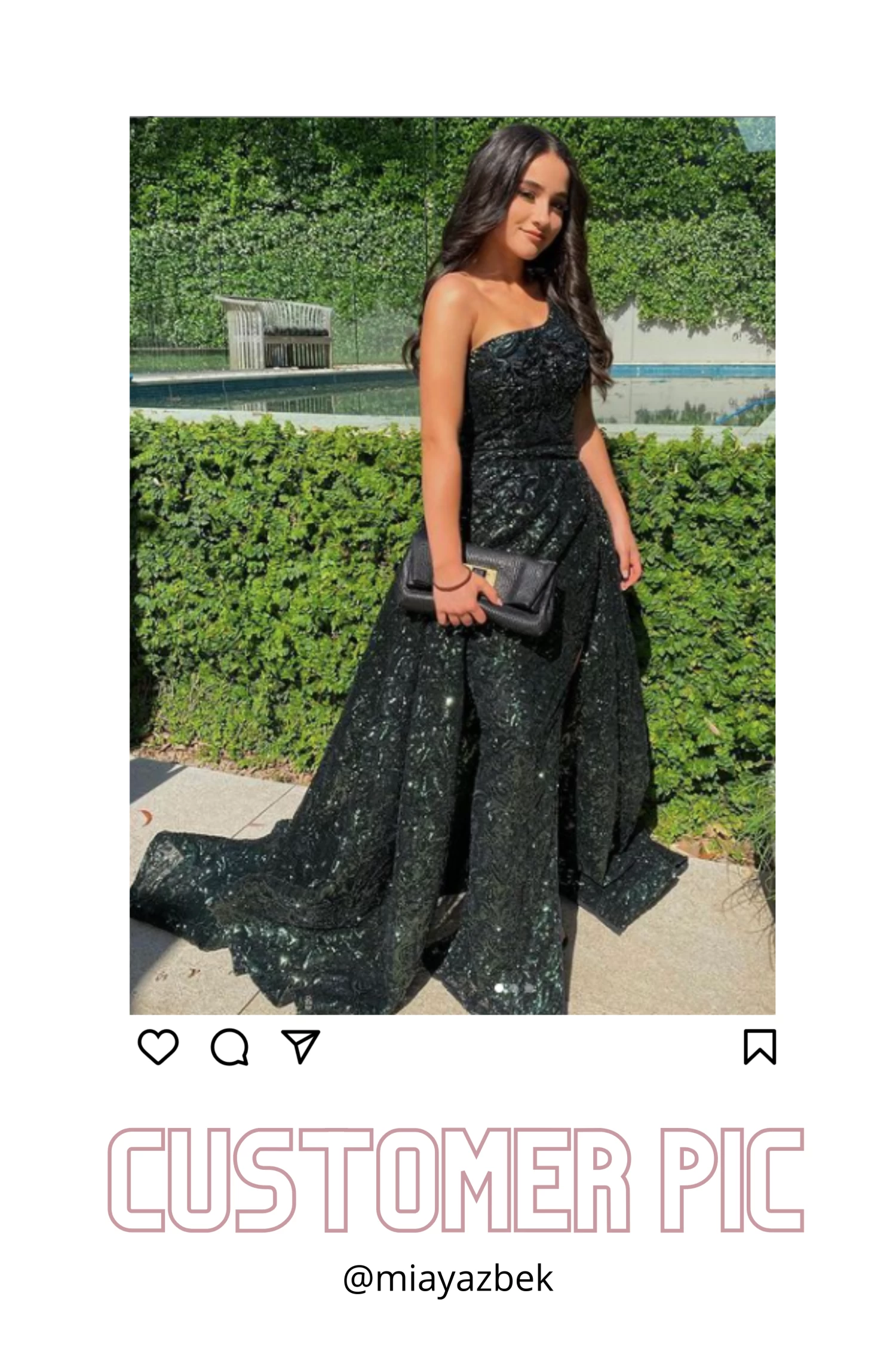 With all-over sequins and a stunning detachable skirt, this dress is a showstopper. We are obsessed with this sophisticated, elegant & chic gown!