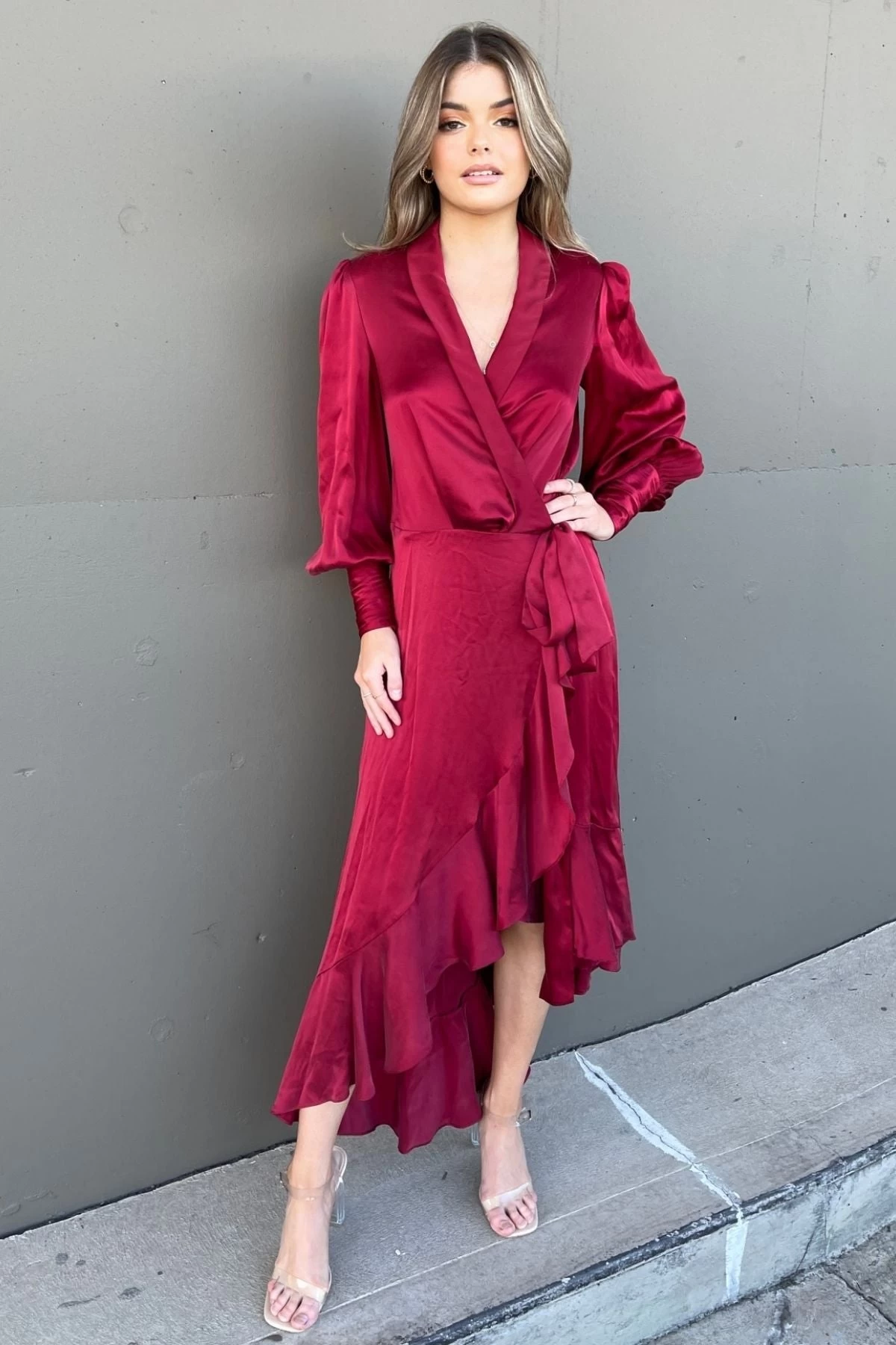 Zimmermann‘s silk wrap midi dress elegantly cinches in at the wrap-around waist. This dress is made from exquisite silk chartreuse with a luxurious semi-matte finish, featuring dramatic bishop sleeves and a sweeping peplum hem.