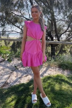 BY NICOLA Gabriella One Shoulder Midi Dress (Pink Grapefruit)