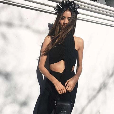 This Morgan and Taylor laser cut fascinator is made with faux leather petals and fitted on a headband.