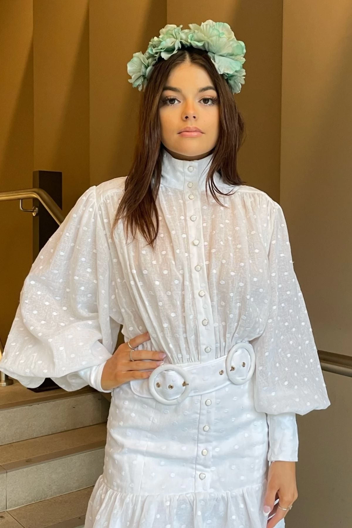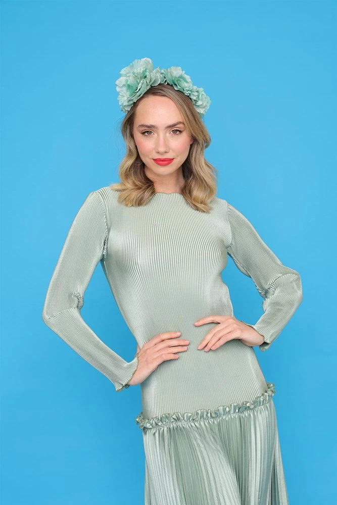 The Morgan & Taylor Alexa Fascinator, the perfect flower headband to add a touch of romanticism to any outfit featuring softly draped florals in pastel colours