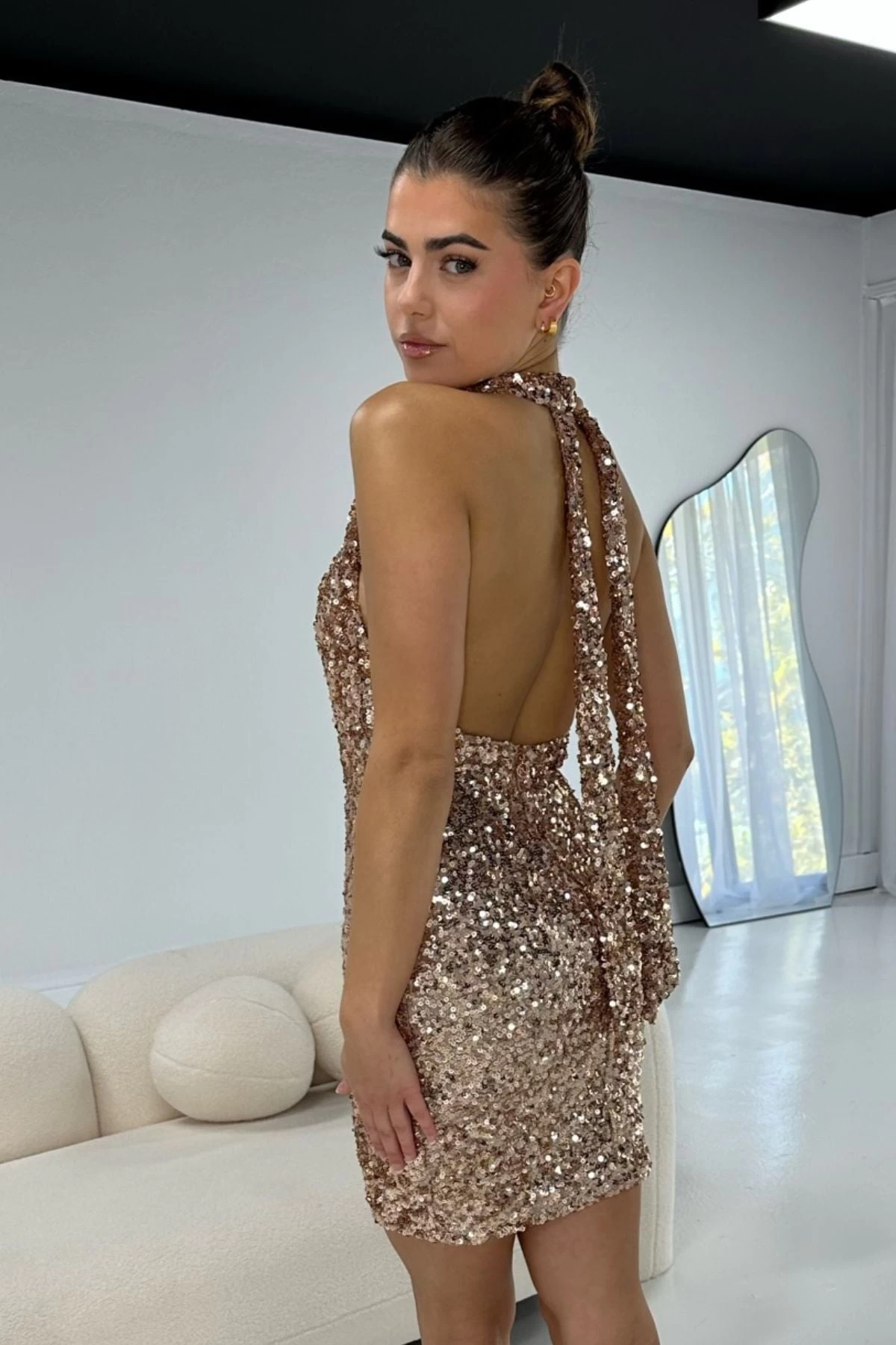 $139 rental – NOOKIE Smoke Show Mini Dress (Rose Gold) – RRP $349